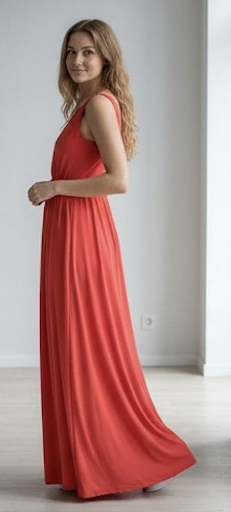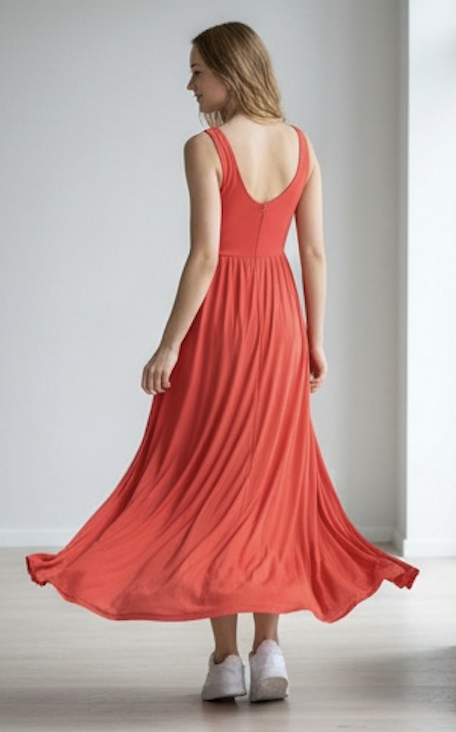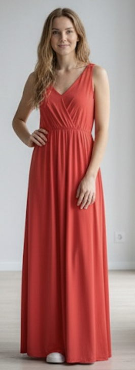 Vestido Largo Rojo Sin Mangas Escote en V